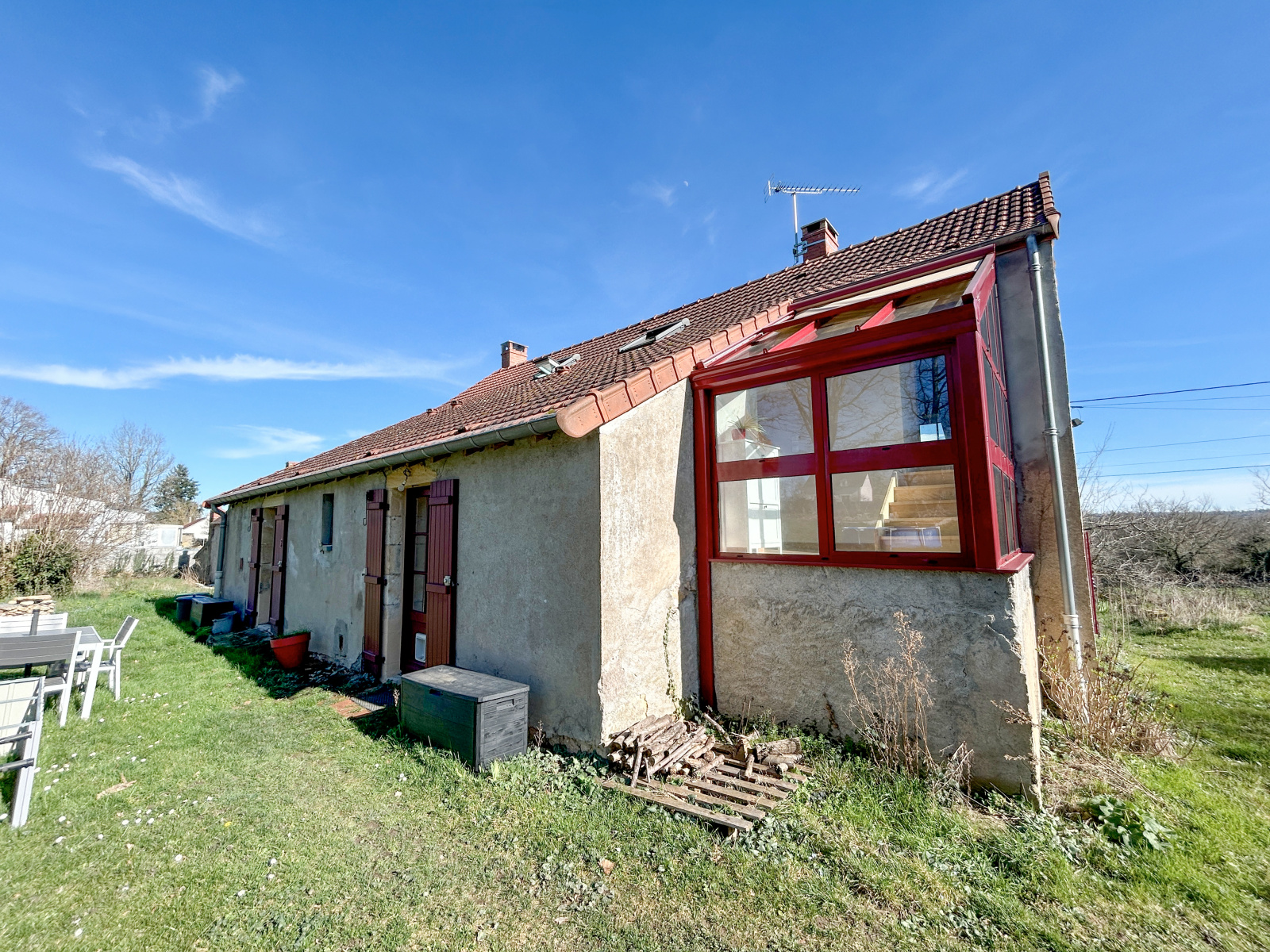 Montvicq, ensemble immobilier composé d'une maison prinipale au confort moderne offrant une belle pièce de vie de 50 m2, cuisine équipée ouvrant sur le jardin et le chant des oiseaux...trois chambres, un bureau, une salle de bains et une salle de douche complètent le bien. Un parc de 3725 m2 abrite un garage, un atelier et une maisonnette d'amis à aménager! Belle vue sur la campagne environnante non loin de toutes commodités, laissez-vous charmer par une visite...